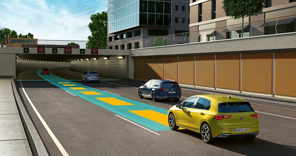 The all-new Golf奠基成熟發展的IQ.DRIVE智能駕駛輔助系統,主動安全輔助功能再進化升級,其中全速域ACC主動式固定車距巡航系統於靜止起步時間從原有3秒提升至10秒,前車起步即可自動跟上,且首度新增道路虛擬實境顯示功能,啟動Travel Assist智慧車陣穿梭系統時,可將周圍路況以3D 介面顯示於數位化儀表中,對路面標線、機車、汽車或大貨車進行多標的辨識,最多可偵測三線道路範圍,協助駕駛清楚掌握周遭車況、降低事故風險。此外,首度新加入Exit Warning離車安全警示系統,在車輛熄火時的三分鐘內,系統即啟動雷達感應隨時偵測駕駛座車側移動車輛及機車,並且於駕駛開門時提供盲點警示燈提醒及聽覺警示,有效保護用路人雙方安全,降低意外撞擊發生機率。