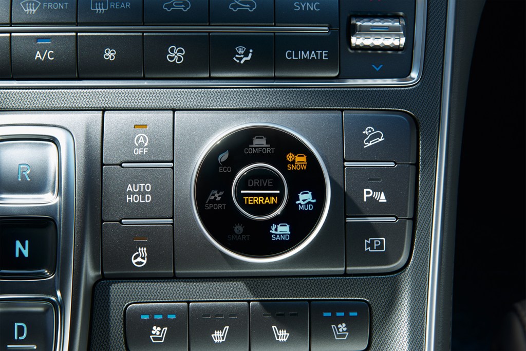 此外,The New SANTA FE標配整合Eco/Comfort/Sport/Smart模式的DRIVEMODE ,更提供同級最先進 HTRAC 4WD智慧型可變四輪傳動系統 (柴油GLD-C車型專屬),智慧判別分配前後軸動力輸出,搭配TERRAIN MODE越野駕馭(Snow/Mud/Sand)多重模式輔助,隨時都能從容不迫征服領地。