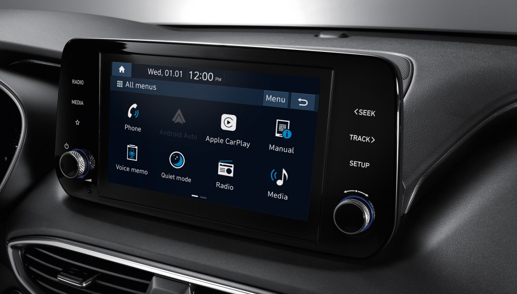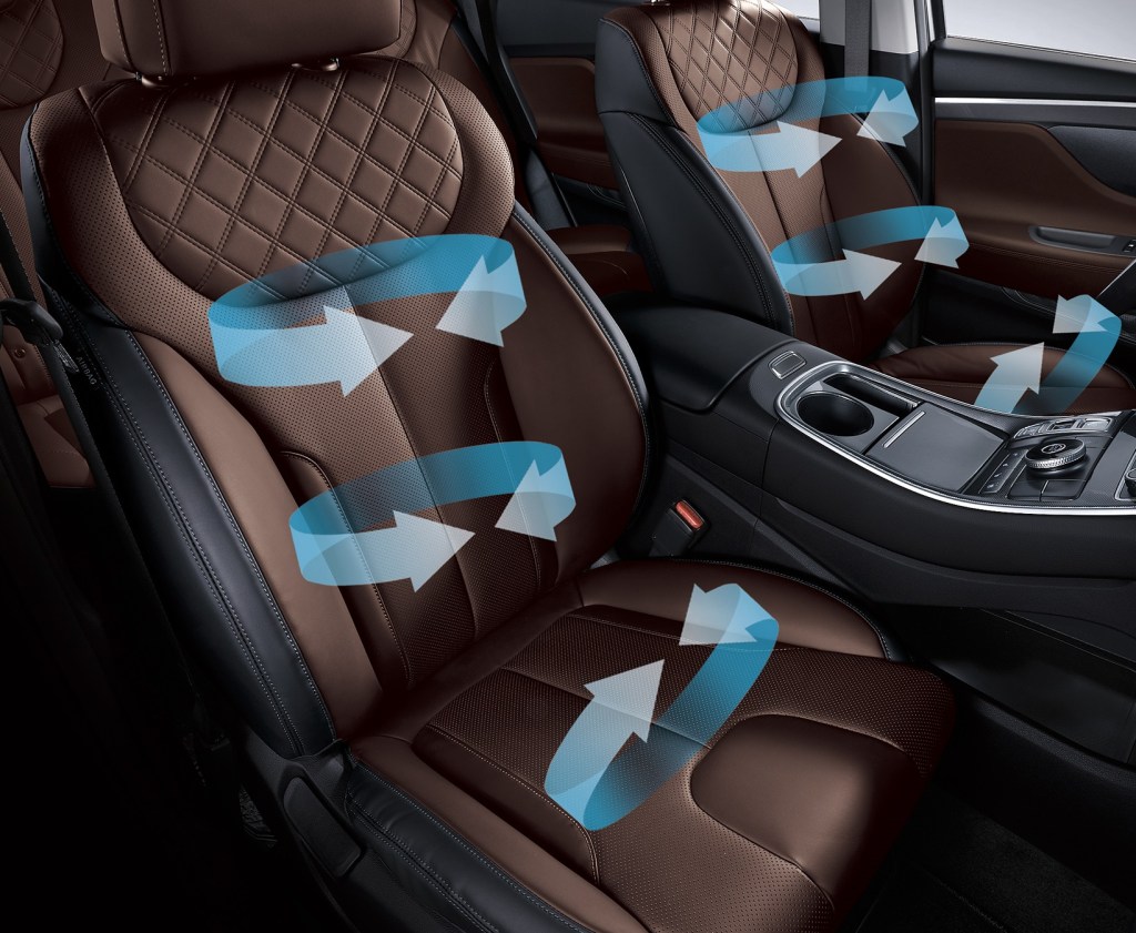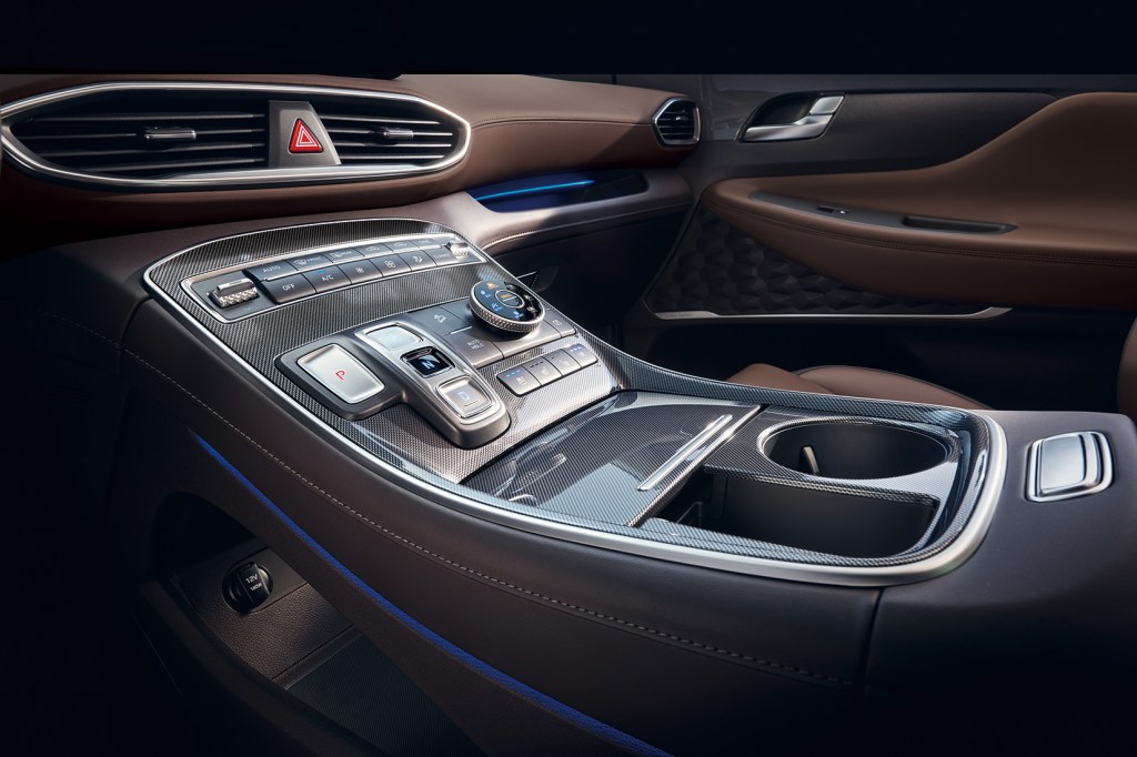 The New SANTA FE 外觀大膽求新,王者之尊的內裝亦邁向高質感進化,選用頂級深棕雙色材質鋪陳車室豪華氛圍,細膩縫線層疊高級鑽石紋真皮座椅,並具備雙前座通風加熱/多向電動調整(附4向腰靠與2向腿靠),以及駕駛座2組記憶與Seat easy access駕駛座輕鬆進出裝置,提供無可挑剃的舒適體驗。The New SANTA FE 亦全新導入12.3吋TFT-LCD全尺寸高解析度數位儀錶、8吋多媒體系統(支援無線Apple CarPlay & Android Auto),高置式鞍座控制台以及國內款首度出現的SBW電子線傳排檔系統,整合加入Qi無線充電座與DRIVE MODE多重駕馭模式控制介面,完備兼容人性與科技的雙重特性。