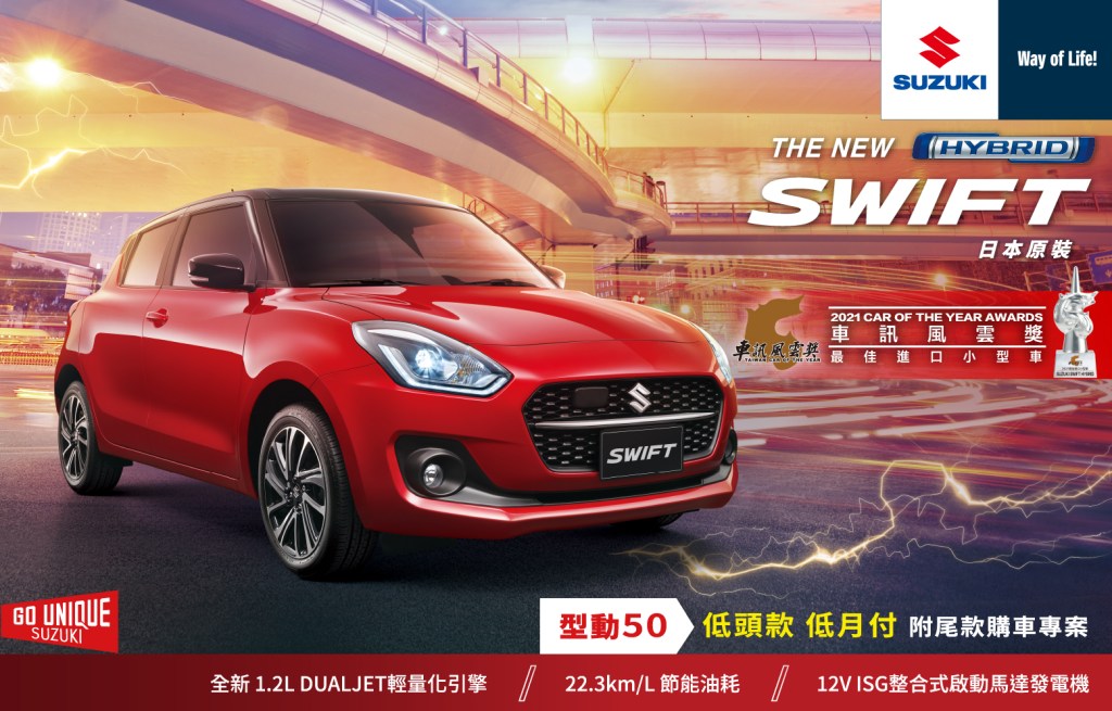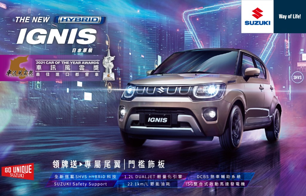 2020年導入全新SWIFT與IGNIS HYBRID輕油電車款,甫上市便獲得台灣消費者的廣大迴響。2021年更獲得國內車壇盛事「車訊風雲獎」中「最佳進口小型車」及「最佳進口都會車」的雙料肯定!