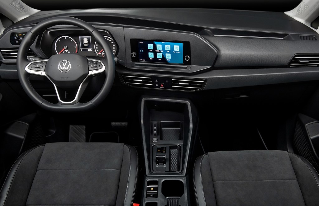 全新Caddy Maxi充滿現代感同時兼顧實用機能性的車室座艙,採用福斯車系新世代中控設計思維,透過整合全新一代觸控面板,以數位化、簡約化、直覺化的面板顯示取代傳統旋鈕與按鍵,舉凡位於駕駛座左側的數位觸控車燈組控制面板、中控台觸控式功能快捷鍵整合多項車用功能、新世代多媒體影音系統、電子線傳式排檔系統、按鍵式電子手煞車及觸控式車艙LED照明燈等,營造出煥然一新的科技氛圍。同級車款中最大的中控台尺寸: Composition 8.25吋觸控螢幕原廠影音系統,並結合APP-Connect手機多媒體連結功能,在功能整合上也更趨完善。至於融入駕駛導向設計的中控台,不僅讓駕駛者使用上更為便利,也更易讀取各項行車資訊;車上的三幅式真皮多功能方向盤(含換檔撥片),可整合行車資訊控制、多媒體系統控制、IQ.DRIVE智能駕駛輔助系統,達到手不離盤即可進行直覺化操作。