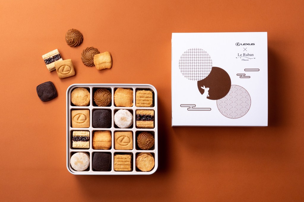 精心打造的「Lexus中秋禮盒」以讓人驚豔的日式風格設計專屬外包裝,將仲秋滿月輕風徐徐的意象,伴隨月兔的形影,搭配暖色線條堆疊出柔和且溫暖的感受,傳達寄托思念故鄉,想念親人之情。八種萬分精緻的餅乾口味,每片餅乾從生產到包裝都是純手工,精選食材包含歐洲天然奶油、日本純手工和三盆糖、澳洲帕瑪森起司。其中雪鹽鹹蛋黃酥餅,以中秋節經典點心—蛋黃酥作為延伸,為法朋專門為Lexus專屬設計的中秋口味,帶有品牌L型Logo獨特造型和甜鹹的鹹蛋黃風味搭配餅乾酥脆的口感,同時兼具傳統與革新,完美呼應Lexus不斷創新的品牌精神。