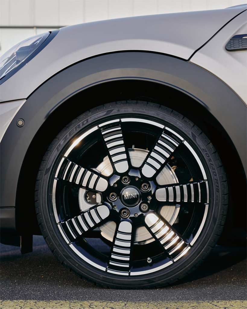 全新18吋Pulse Spoke Light輪圈採七輻式漸層設計,以銀色與黑色高光澤線條,由內而外交錯出如道路飛馳般的速度感;亦有全新具剪刀刀刃意象設計感的Scissor Spoke雙色輪圈、Pedal Spoke黑色輪圈、Tentacle Spoke黑色輪圈可供選擇,展現個人獨有品味。全新MINI掀背車系與敞篷車全車系輪拱更採用與JCW車型相同設計,全面優化空氣力學。