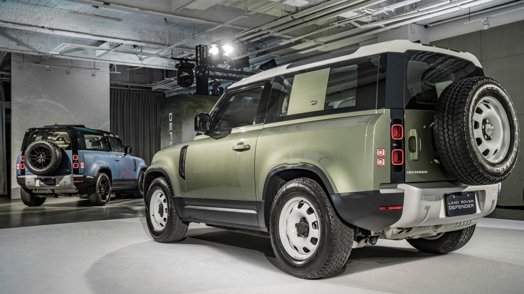 - The New Land Rover Defender 90擁有不可錯認的三門經典外型,以現代設計語彙重新雕塑更為完美的車身比例。另有4款風格機能套件與90車型獨有的折疊式帆布車頂可供選配,讓消費者打造自我專屬的風格坐駕。