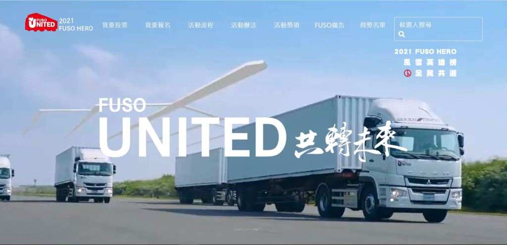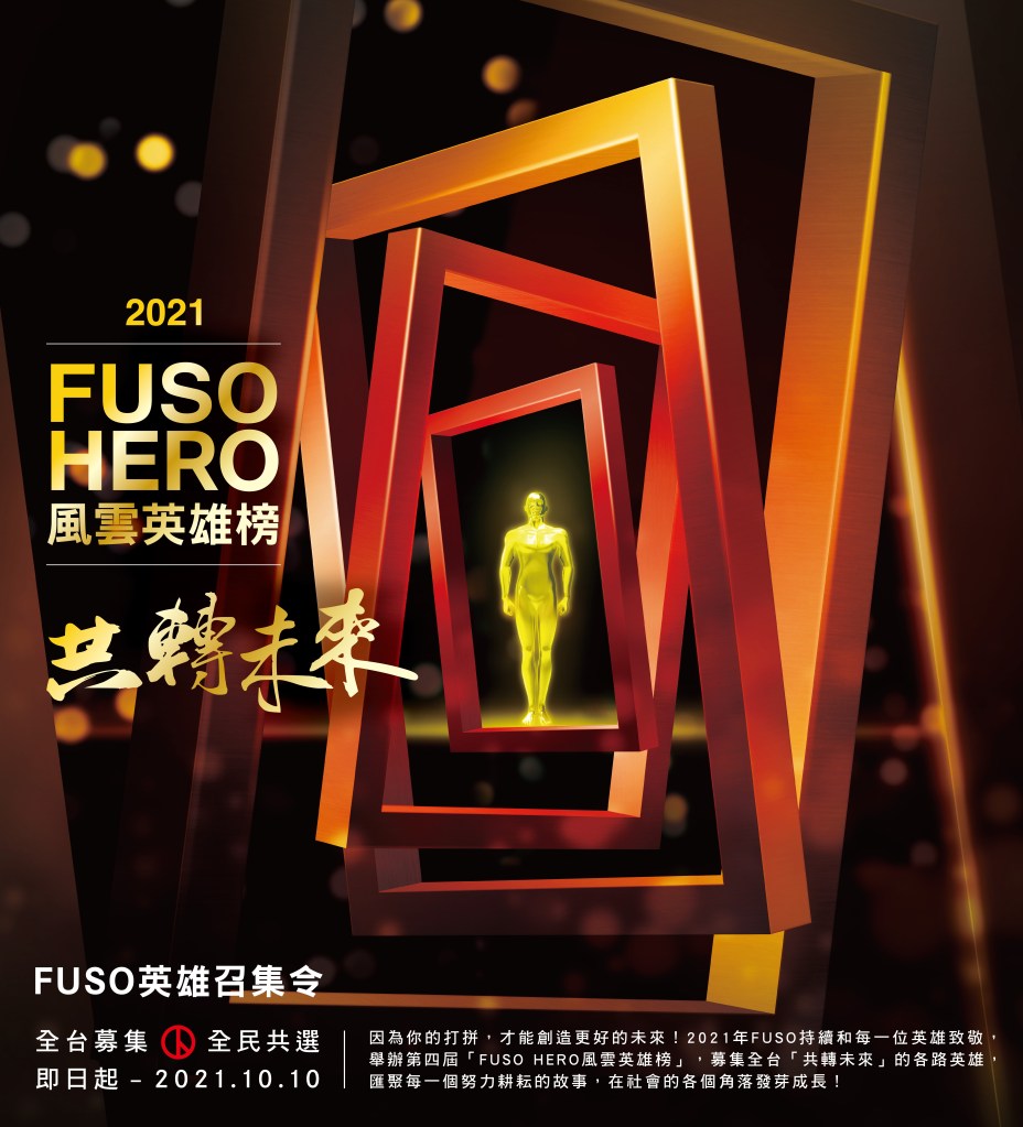 5月疫情再度籠罩全台,靠著各行頭家及運匠朋友,日以繼夜地在各個角落堅守崗位,轉動著生活日常,讓台灣經濟及社會得以前進。因此FUSO再次募集全台各地奉獻打拼的FUSO英雄們站出來,讓社會可以向他們喝采與致敬!2021年第四屆「FUSO HERO風雲英雄榜全民共選活動」活動正式開跑,結合今年「FUSO UNITED共轉未來」年度主題,召募「卓越共轉」、「親友共轉」及「傳藝共轉」三組參選人。FUSO HERO得主將獲頒精緻獎牌及2~5萬元FUSO禮券,並於年底與親友受邀參加商車屆年度盛事-FUSO HERO風雲英雄獎的頒獎晚宴,親臨現場共同感受獲獎的光榮時刻!還有機會在現場抽中一臺價值百萬的FUSO六期堅達3.5噸卡車。今年活動已開跑至10/10日止,力邀各路FUSO英雄一同共轉未來;而每位FUSO英雄的誕生,都需要網友的熱情投票支持,現在馬上上網投票就有機會得大獎!