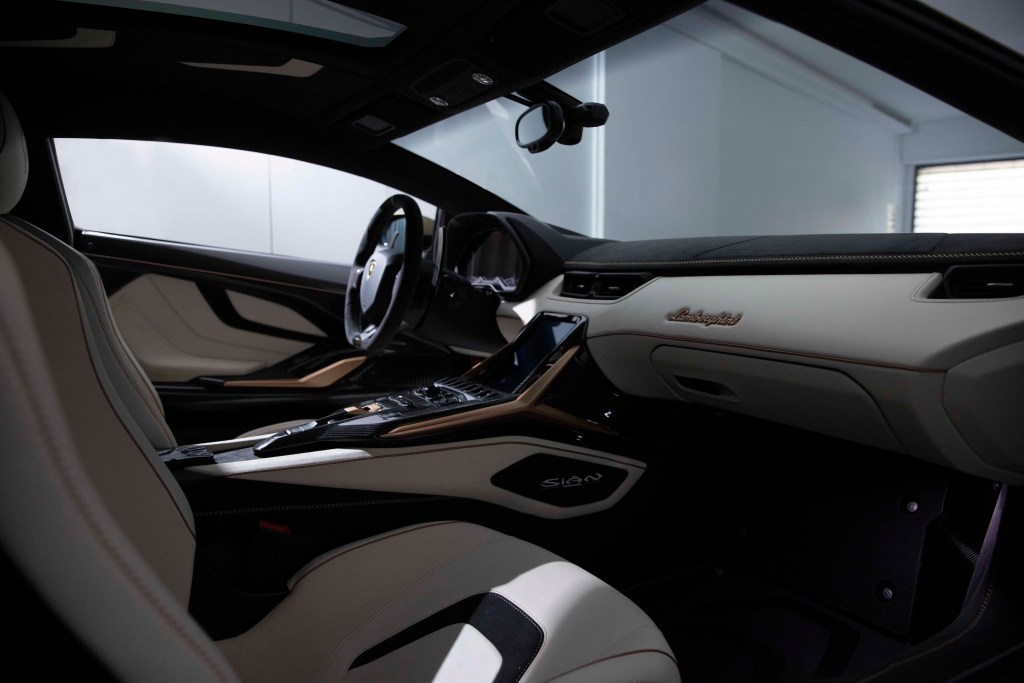 首部抵臺的Lamborghini Sián外觀車色為Verde Gea Matt—帶有金屬色澤的消光軍綠色,並以Oro Electrum消光金點綴,此車身漆色含有金色薄片與水晶微粒,層疊出完美色澤,與內裝設計完美搭配,體現未來電動化的Lamborghini對於色彩與完美材質絕不妥協的堅持。內裝選以Bianco Polar 與Nero Ade 的Alcantara皮革,以純淨的白色飾以深邃的黑色,親眼鑑賞,彷若置身於視覺交響盛宴。