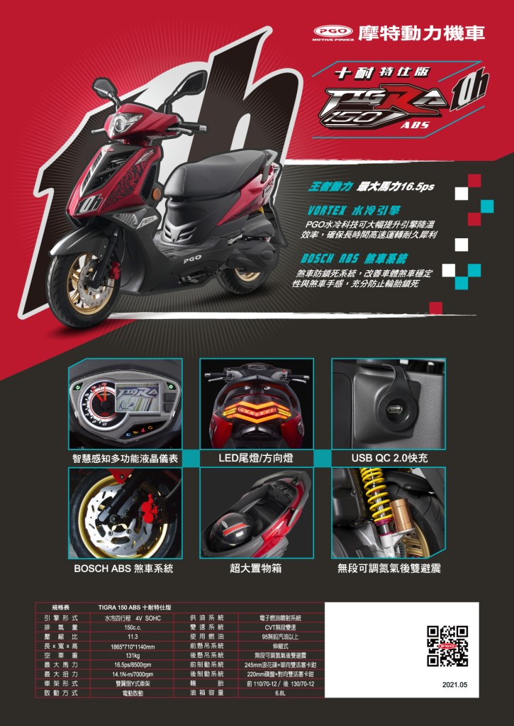 除此之外,PGO 旗艦車款 Tigra150 及 Tigra200 同步搭上這班開學搶新騎列車,以水冷引擎,強勁動力性能聞名的 Tigra 車系,不僅在引擎輸出的極限及穩定性上表現優異,更標配 ABS 煞車防鎖死系統,以足夠的制動力稱霸此級距,無論是短距通勤或是長途行駛,騎乘舒適度及車身穩定性,皆讓王者風範嶄露無遺。