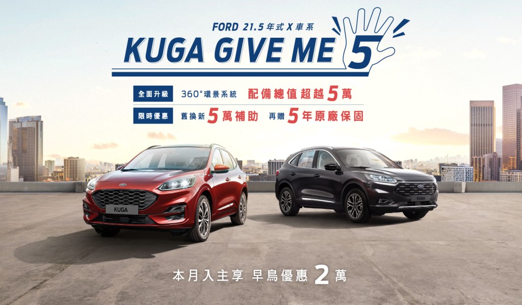 | The All-New Ford Kuga 21.5年式 | 本月入主除享防疫早鳥優惠,還享5年原廠保固同享舊換新 5 萬元補助 |