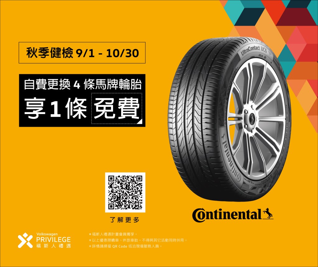 台灣福斯汽車持續為車主帶來更多售後服務與優惠活動,為讓車主在駕車時能擁有良好空氣品質與潔淨車室,Volkswagen秋季健檢免費為車主進行O3臭氧除菌和除臭服務,採用專業型 O3 空氣臭氧殺菌機進行全車快速淨化空氣,利用臭氧將病毒細菌氧化分解,達到殺菌除臭效果;行車安全檢查(市值500元)則有空調、冷卻、煞車、輪胎及電瓶等各系統檢查,貼心守護行車安全。而為回饋「福斯人禮遇計畫」會員,活動期間內原廠指定保養耗材零件優惠75折起(此折扣包含「福斯人禮遇計畫」既有維修保養零件折扣以及秋季健檢額外10%折扣),同時一次自費更換四條馬牌輪胎的會員車主,再享一條免費(僅限轎車、休旅車型,不可與其他活動同時併用)。