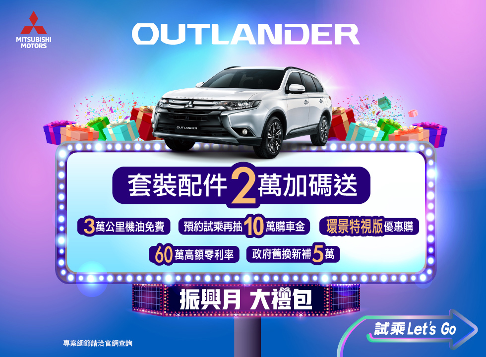 | ●OUTLANDER ‘21年式 2WD 88.9萬~110.9萬 4WD 107.9萬 | OUTLANDER環景特視版限量上市,搭載Panasonic多功能觸控音響主機及360度環景輔助系統,增加行進中的視野,降低碰撞的風險,舊換新價98.9萬元起。 本月推出OUTLANDER「振興月大禮包」專案,凡購買OUTLANDER特定車型即可享有五項好禮優惠(、套裝配件2萬加碼送、3萬公里內機油免費、環景特視版優惠購、60萬高額0利率、政府舊換新補5萬)。 高額60萬0利率實施中! |