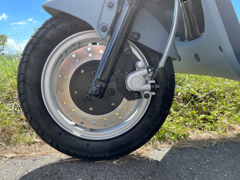 雖然馬力只有3kW、換算下來約4hp,但扭力卻有115Nm也就是11.7kgm的表現,所以是屬於短跑衝刺型的小傢伙,也能克服爬坡山路,而官方數字極速為50km/h,但載著70公斤的我還能油門一拜到53km/h,這也就夠了!雙槍後懸吊雖是為了機械結構所設計,但調校後應付坑洞的減震效果不錯,且坐墊內的泡棉頗為軟Q,全然是以舒適為取向,但操控靈活性並沒有因此而減弱,畢竟不到1,700mm的車長和1,174mm軸距,小巷弄閃避、迴轉都難不倒,制動性也在前後單碟(前200mm/後180mm碟盤)的幫助下,得以有效縮短煞車距離。