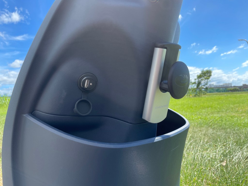 大家可千萬別以為掛上「Powered by Gogoro network」的PBGN聯盟後廠商就必須全部買單,沒有!像EZ1就僅止於電控系統、馬達總成及電池系統是來自Gogoro,簡單來說除了坐墊底下那個部分,其他包含車架、懸吊、造型與細節部分都是出自中華汽車之手,由於已經有了過去的經驗,自然也會做更優化的改善。礙於電池與馬達總成的原始設計限制,導致其他合作品牌都必須在坐墊造型下功夫,來提供更符合人體工學的坐姿,EZ1在這點就很貼心,將前緣部分削成「類錐形」,讓騎乘時雙腿更能緊閉,否則騎乘姿勢似乎有點不雅;740mm的座高與頗寬的腳踏平台,管你是150cm或是180cm身高通通都能「腳踏實地」。至於能擺入3/4安全帽的21.6L置物容量、可放置飲料的前置物格、USB充電座、掛勾等,都是非常貼心的小巧思,去買手搖飲、便當不怕沒地方放,至於Keyless鑰匙卡,就和悠遊卡沒有兩樣,感應右前下方後再啟動電門就好,不用掛串鑰匙在那裏晃啊晃,不過以我個人的喜好,我還是希望用傳統鑰匙,怎說?年紀大了比較健忘,怕把鑰匙卡和隨身背包丟在置物箱裡頭!