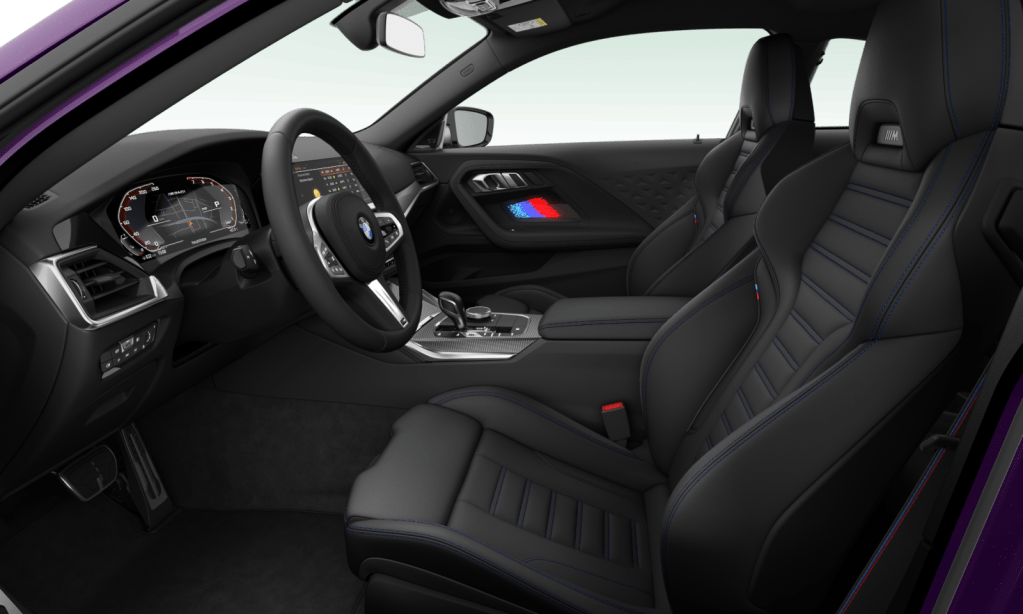 全新BMW 2系列Coupé雙門跑車雕塑迷人經典身影同時更未曾忘卻駕馭本質,堅持一貫的駕駛者導向設計,融入12.3吋虛擬數位儀錶與10.25吋中控觸控螢幕所構成的全新BMW全數位虛擬座艙,全新iDrive7.0使用者介面、iPhone手機數位鑰匙、BMW智慧語音助理2.0、無線智慧型手機整合系統(含Apple CarPlay與Android Auto)、手機無線充電裝置與車況抬頭顯示器,更展現BMW一貫超越對手的數位化科技駕馭生活;除了頂尖科技,全新2系列Coupé雙門跑車同樣構築於豪華之上,220i M Sport配備M款真皮多功能方向盤、Sensatec透氣皮質雙前座跑車座椅、雙前座電動調整含駕駛座記憶功能、鋁質格紋飾板、環艙氣氛燈組與豪華型三區恆溫空調,結合BMW Personal CoPilot智慧駕駛輔助科技,而M240i xDrive更追加Vernasca真皮M雙前座跑車座椅、M光影車門飾板、M款縫線安全帶及harman/kardon高傳真音響系統,洋溢BMW M Performance專屬動感風格。