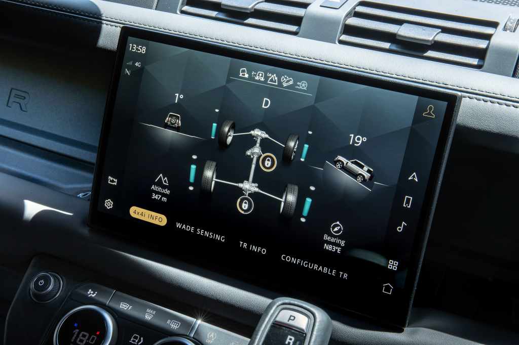 Land Rover Defender 90 V8 Carpathian Edition特仕版運用多項尖端科技,車輛資訊娛樂系統升級為11.4吋曲面觸控大型螢幕,並搭載最新Pivi Pro資訊娛樂系統,整合多項越野資訊,提供駕駛最即時的資訊,全車搭載多項尖端車輛主被動防護科技,360度全面守護行車安全。
