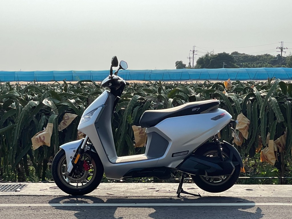 採用兩顆電池的的S7R,輸出功率為7.2kW,官方數據為155km的續航力,極速和0-50km/h加速分別為95km/h、3.5秒,就以白牌電動機車而言稱得上最速,在實際測試下極速大約在101-102km/h之間,除非你是速度狂熱者,否則一般人並不會想去挑戰極高速,當然台灣也沒有安全又合適的地方,更重要的是一切必須安全至上。而且初次體驗S7R時會發現,轉動油門起步時不會產生電動機車那種不安的暴衝,所謂的不安,是因為你不知道力道何時會湧現,反倒是比較類似油車那種感覺,或許有人認為電動機車就是要隨傳隨到、油門轉多少就要有多少扭力呈現,畢竟不是每個人都是專業賽車手,稍一沒控制好恐會發生意外,因此這點S7R就掌控得很好,油門轉動一過了甜蜜點,接下來就是享受速度的開始。此外,基於扭力過大,S7R特地配置同級首創的ETS電控兩段變速系統,此裝置與PORSCHE Taycan相同,約莫在時速60km/h左右便會從一檔進入二檔,此舉可讓高扭力持續延伸,難怪我覺得加速是源源不絕;同時馬達運轉音頻並沒有競品高,這點也是值得讚賞。至於騎乘心得,其實和燃油速克達大同小異,就差停等紅燈時沒有引擎怠速的聲浪。