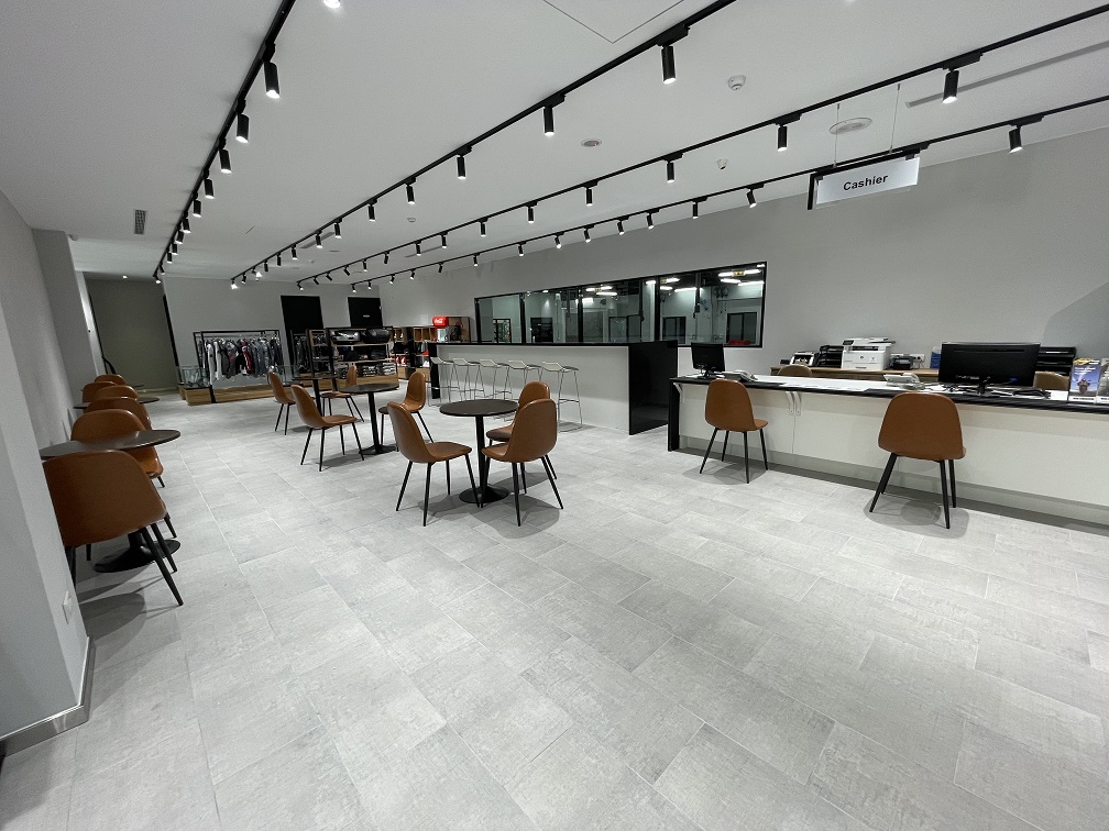 HONDA Motorcycle Chungher提供了足夠寬敞的停車空間,即使不是開車來的顧客,搭乘捷運到橋和站走路僅三分鐘即可抵達;一旁就是台64快速道路,也方便重機騎士騎車前來。中和旗艦店展間佔地寬廣,展間明亮,展間內擺放了HONDA品牌旗下各式產品,一進到大門就可以看到大型鍍鉻Wing Mark夢想之翼的Logo作為精神象徵,也傳遞著「Be Your Wing」的品牌精神,大面積落地玻璃窗引入外頭的景色與光線,窗外車水馬龍的中和街景環繞,在展間內彷彿世外桃源般清幽的氣息;另外在休息區也有許多安駕課程的照片,讓車主可以細細回味之外,也讓新顧客可以了解售後服務的美好。維修區設置在展間旁,寬敞明亮的設計讓車主可以安心將車輛交給技師處理,如果願意的話也可以在旁觀看愛車,而進到展間休息則可以體會到中和店的用心之處,一旁有著專門放置安全帽以及吊掛外套的櫃體,讓騎車前來保養的車主不必大包小包進到展間內,更從容優雅地享受服務。