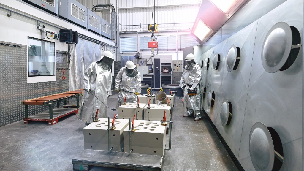 即使在魏薩工作的員工也鮮少有人知道,廠區內1號樓的舊大門後方,自1971年以來便設有保時捷專屬的鑄造廠。每個工作日下午一點半開始,在合金熔化、預處理及檢查後,便會製造出鑄件。攝氏700度以上高溫的液體合金倒入砂鑄模具中,製作模具過程所需工具也交由原廠自行開模製造。鑄造廠的產品包羅萬象,從洗衣機滾筒大小的電動馬達外殼,到鑄造廠長與其團隊從模具中挑揀出來細絲般的車身零件都包含其中。