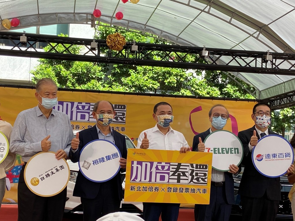 在這波疫情下,新北市的庶民經濟受到非常劇烈的衝擊,估計損失超過五百億;為振興庶民經濟,新北市邀請在地企業、商家、民眾共同參與加碼加倍券振興經濟方案,裕隆集團善盡企業社會責任,關心在地創生與庶民經濟發展,率先響應支持,由旗下裕隆日產汽車、裕隆建設、納智捷汽車,分別提供Nissan X-TRAIL、KICKS 與 LUXGEN URX各一輛,共計三輛暢銷車款,總價值超過新台幣三百萬元作為這次抽獎獎品。
