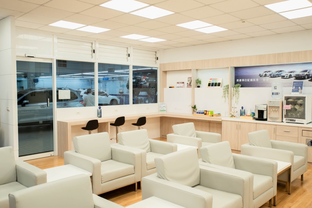 SUBARU南台中丞慶展示中心的售後維修服務廠經過全面擴建並重新規劃,服務廠佔地總面積由220坪擴增至312坪,以寬敞明亮的服務廠進出走道設計,優化進出廠的動線便利性及順暢度。服務廠內設置有引擎機電維修、底盤檢修、鈑金工位及烤漆等區域,而專屬工位亦擴增至8個,進一步提升維修服務的量能。此外,顧客專屬客休區同步新增3個商務吧檯,讓車主在等待愛車維修保養的同時,還能同步處理公務,以高規格款待每一位蒞臨到店的顧客。