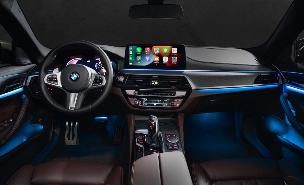 在科技氣息十足的駕駛者導向座艙氛圍之中,全新BMW 5系列更施以精緻材質鋪陳,車室空間大量運用黑色高光澤與鍍鉻材質點綴,不僅配備環艙氣氛燈組與大幅提升座艙舒適性表現且與旗艦車款同級的豪華型四區恆溫空調與B柱冷氣出風口,520i Sport及520i M Sport更升級Sensatec透氣皮質包覆的雙前座跑車座椅,並加入椅背透氣孔與縫織菱格紋,整體觸感更為柔軟舒適,而520i M Sport車型以上更全面採用電動玻璃天窗及harmon / kardon高傳真音響系統(含16具揚聲器),結合同級距最長的2,975mm軸距,造就極其舒適的後座寬敞乘用空間;至於530i M Sport與530i Luxury則全面升級與旗艦車款同享尊榮規格的全新車門自動緊閉系統,結合可進行20向電動調整的Dakota真皮雙前座舒適型電動座椅、Sensatec皮質儀錶檯包覆,堆砌出令人陶醉的細膩豪華質感。