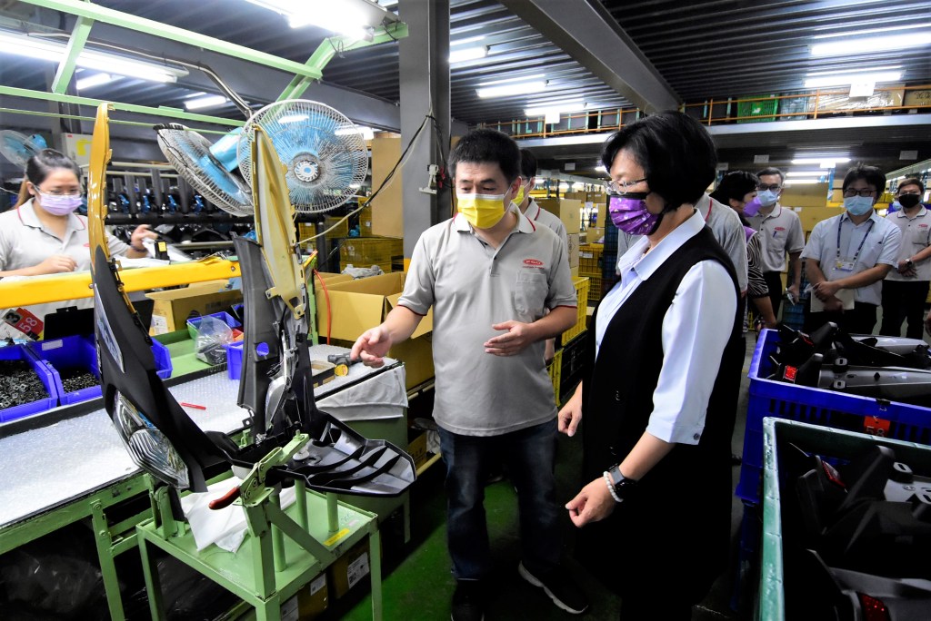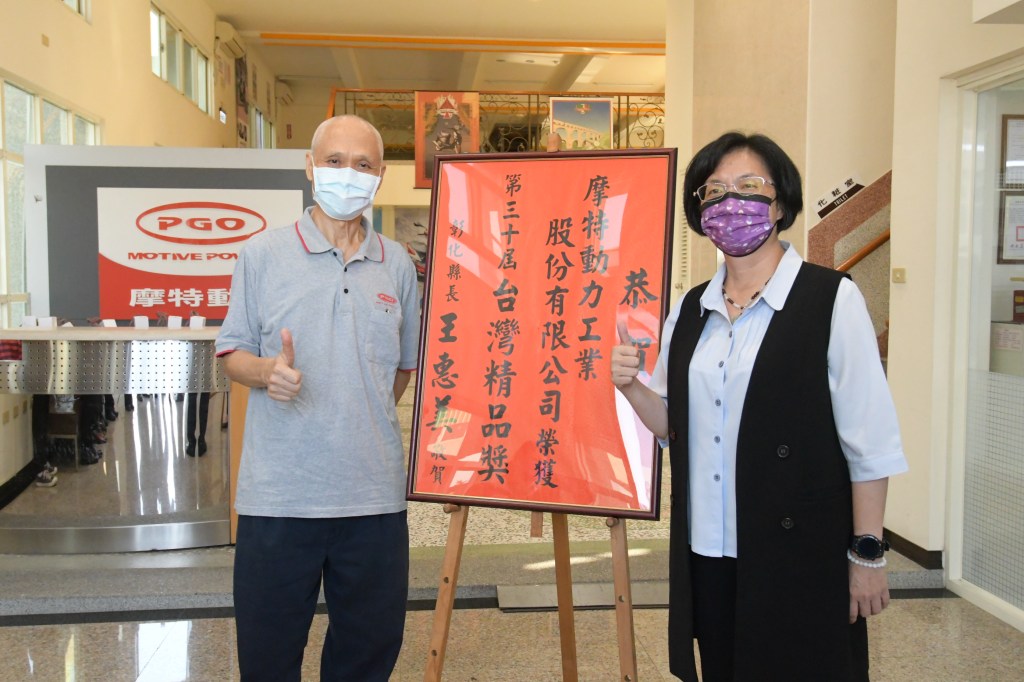 彰化縣長王惠美4日上午前往彰化在地產業隱形冠軍-大村鄉摩特動力工業股份有限公司參訪,由經濟暨綠能發展處長劉玉平、彰化縣工策會副總幹事陳穎青等人陪同,摩特動力機車執行長王公爕、內銷業務經理林志仁等人向王縣長介紹產業特色及公司深耕在彰化的緣由。王縣長表示,這次來到彰化在地廠商 PGO摩特動力機車,在彰化摩托車產業做得十分成功,今年再次經濟部台灣精品獎,已連續20年獲得經濟部台灣精品獎,並行銷到全世界60餘個國家,可以說是彰化之光、台灣之光。