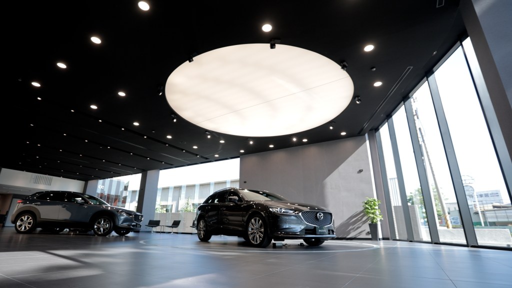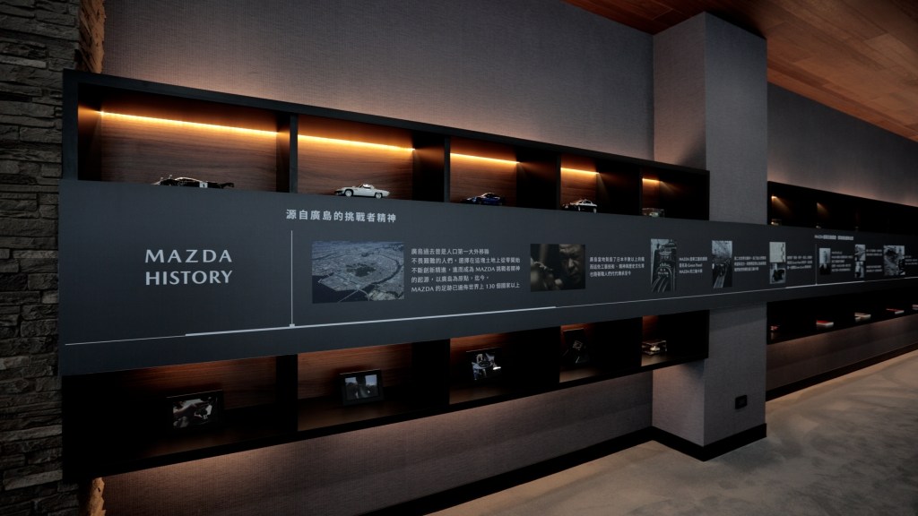 高雄民族旗艦店是最新完成升級的新世代旗艦據點,座落於北高雄不僅交通便利,亦為匯集各汽車品牌展示間的核心區域。採用MAZDA最新世代的設計概念,優雅呈現精雕細琢下的日式美學。外觀建置大型漸層式玻璃品牌牆,呈現氣勢非凡的高級質感;內部空間以嚴選天然石材及進口木質營造出時尚精緻與溫潤高雅的氛圍,並採用挑高設計使陽光愜意的灑落,讓自然光影襯托出每部MAZDA細膩簡約的車身線條;一樓入口處旁,圓形光影下的重點車款展示區域,搭配日式花道的展示車陳列,讓顧客步入展示間的瞬間,即可感受整體日式氛圍。除了一般展示空間之外,二樓的貴賓專屬區域以柔和溫暖的木質天花板搭配精心配置的燈光,顧客可在此欣賞陳列於一樓的新車並放鬆地進行洽談,亦可自在享受寬敞開闊及寧靜舒適的休息空間;同時,規劃品牌歷史專區展示多款MAZDA經典模型車,搭配精心挑選的各項家具與藝術品,每處細節皆能完美傳遞MAZDA的職人工藝精神並彰顯車主的雅緻品味。
