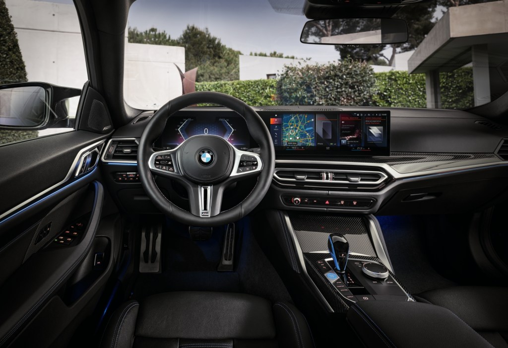 維持品牌始終堅持的駕駛者導向座艙設計,全新BMW i4內裝透過俐落、簡潔的設計語彙,呈現品牌全新的豪華現代車室氛圍。車室內最醒目的全新一體式曲面螢幕整合12.3吋虛擬數位儀錶與14.9吋中控觸控螢幕,擁有高達200ppi的數位解析度且從每個角度都能輕鬆判讀螢幕所呈現的資訊,結合全新世代BMW iDrive 8.0使用者介面、車況抬頭顯示器、BMW智能衛星導航系統、無線智慧型手機整合系統、BMW智慧語音助理2.0與最高規格的BMW Personal CoPilot智慧駕駛輔助科技,為全新BMW i4勾勒出獨樹一格的電能先鋒姿態。此外,全新BMW i4更具備車壇中唯一的BMW手機數位鑰匙,只要直接用智慧型手機感應門把就能上鎖與解鎖,將手機放在無線充電座上便能直接啟動車輛,讓車主只需要帶著手機就能輕鬆使用座車,以輕便俐落的姿態享受BMW帶給駕駛者的前衛用車體驗。