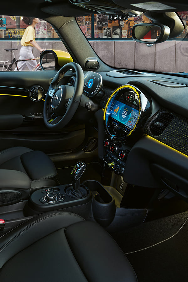 質感出眾的座艙空間亦隨處可見MINI Electric細節巧思,承襲戰鬥機駕駛艙撥桿設計的經典引擎啟動撥桿,採用醒目的MINI Electric電動車專屬色調Energetic Yellow,按下引擎啟動撥桿,純電駕馭樂趣即刻展開。MINI Cooper SE專屬電子排檔桿、MINI Cooper SE Electric內裝飾板、MINI整合式數位儀表之輸出功率亦採Energetic Yellow設計,純電美學座艙氛圍渾然天成。
