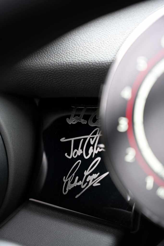 Cooper家族創立的Cooper汽車公司Logo亦細心置入於C柱、專屬方向燈飾板、專屬迎賓門檻、Nappa真皮跑車方向盤,紀念曾勇奪兩屆F1世界車隊冠軍的Cooper家族與MINI共同締造的賽車傳奇故事。駕駛座左前方更有Cooper家族John Cooper、Mike Cooper、Charlie Cooper三代簽名,更添不凡紀念意義。