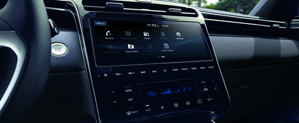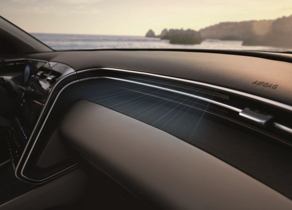 座艙室內的人因數位化介面設計同樣驚艷,第一眼的The All-New Tucson L是出自大自然最心神嚮往奇景-飛瀑式造型,前座開闊平整的視野,映入駕駛眼簾的10.25吋數位儀表採用無邊框式流線設計和專屬防眩光塗層科技,為造型前衛但又不失實用性的車載資訊幕;另搭載相比同級車最大尺寸的全新10.25吋觸控多媒體系統,同時整合數位多媒體功能與空調。首度出現無直流風機艙空調陳設,透過隱藏式多點出風口設計,不僅讓車艙帶有自然微風效果,更是讓出風口噪音值降低,就像是乘座頭等艙般的靜謐享受;媲美進口豪華車的天橋式鞍座及SBW電子線傳排檔設計,皆是HYUNDAI新世代車款設計。此外,The All-New Tucson L領先業界同級的新科技-遠端引擎遙控啟閉系統,透過Smart Key智慧鑰匙可以在上車前遠端發動引擎,預先開啟恆溫空調,讓車主進入車內即可展開舒適旅程,開啟高質感用車體驗。
