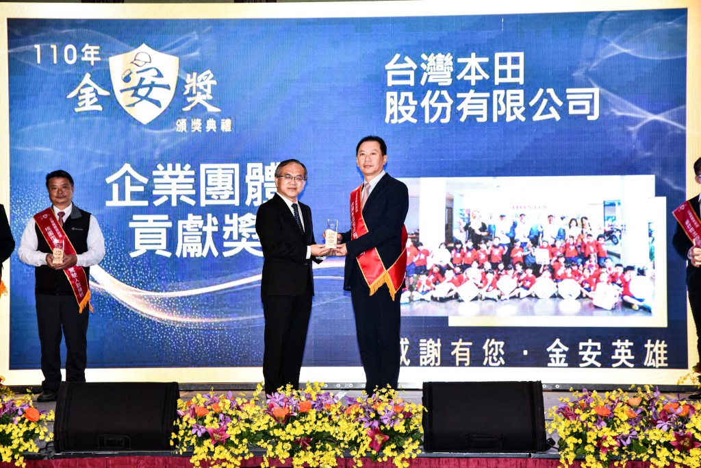 交通部日前舉行「110年金安獎」頒獎典禮,其中企業團體貢獻獎由Honda Taiwan台灣本田股份有限公司等5家公司及團體獲得。交通部金安獎自民國79年開辦,至今超過30年,被譽為台灣交通安全奧斯卡獎,其中企業團體貢獻獎由各地方縣市政府、教育部、內政部警政署及交通部提報促進道路交通安全有特殊成效的企業或團體,經由專家學者投票選拔最優的前5名。