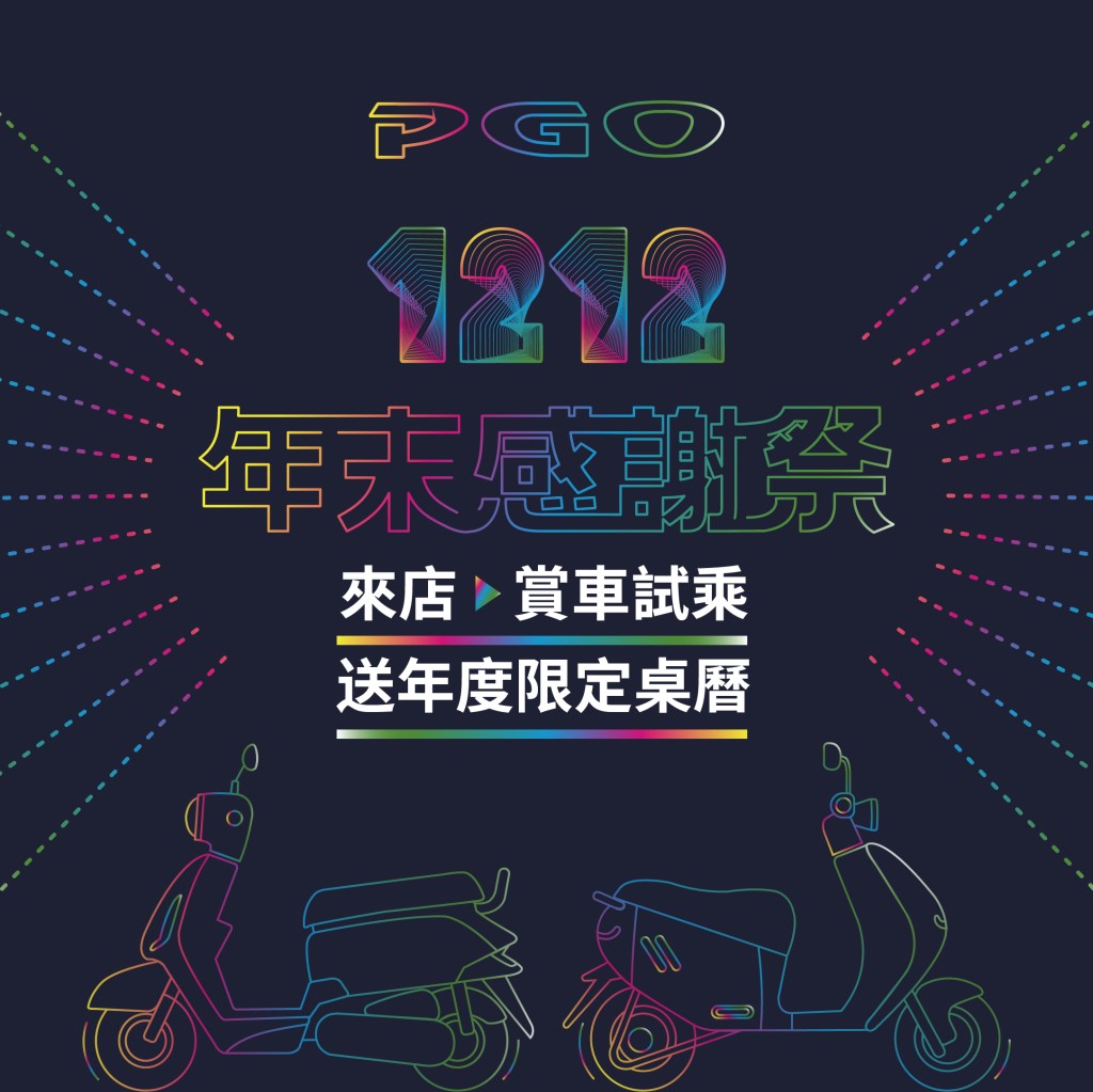 為慶祝台灣精品獎20連霸,本月藉由雙12感謝祭,PGO祭出到指定門市送限量好禮活動,活動自即日起至12/19止,凡至官網活動網頁中的指定店家賞車試乘,就有機會拿到限量的2022年PGO精美桌曆。數量有限,送完為止,快點來收藏!