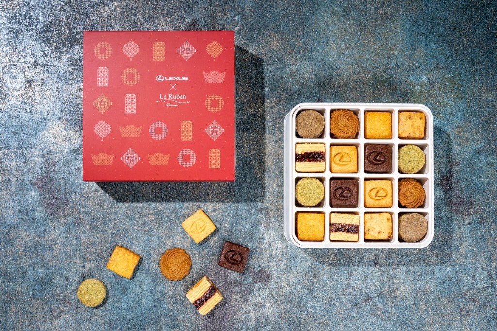 精心設計的法朋聯名「Lexus春節餅乾禮盒」則是以金蔥且象徵喜氣的大紅色包裝,點綴春到福到的春聯、象徵財源滾滾的元寶和錢幣、裝載滿滿心意的紅包袋,每個元素都充份呈現親友之間細膩的幸福與感動。8種口味、超過60片的美味餅乾,每片從生產到包裝都是純手工,除了熱門的可可、咖啡、覆盆子香緹、鹹蛋黃奶油酥餅外,還包含香蔥、鹽之花辣起司、日月潭紅玉紅茶酥餅與文山包種茶酥餅等Lexus專屬口味。其中可可餅乾和鹹蛋黃奶油酥餅帶有品牌L型Logo獨特造型,搭配香濃酥脆的口感,同時兼具傳統與革新,完美呼應Lexus不斷創新的精神。