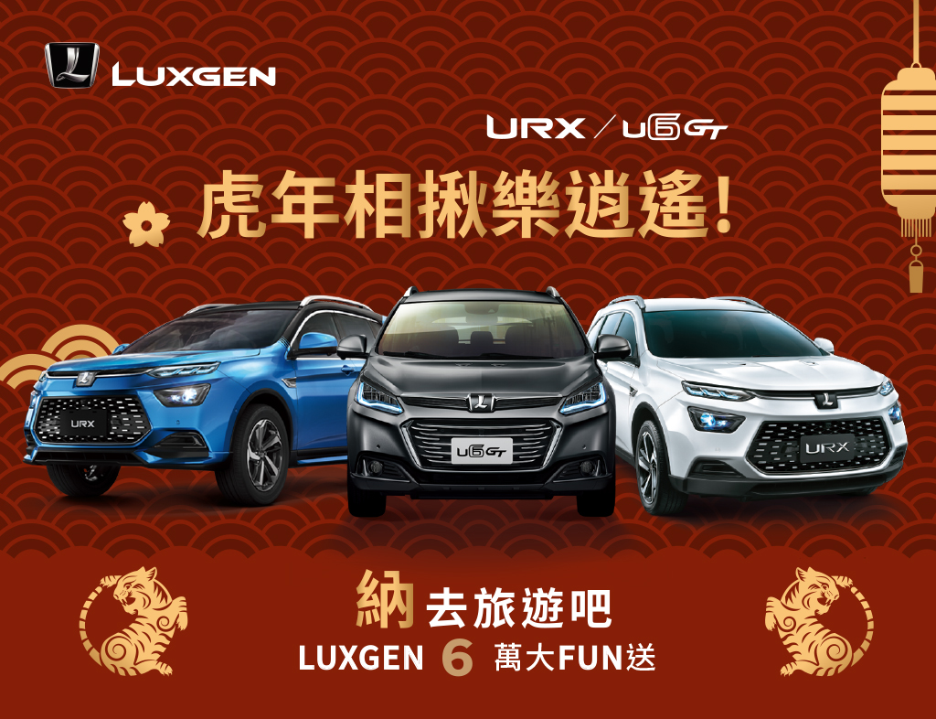 時值農曆春節將屆,更是闔家團聚出遊的重要時刻!LUXGEN因應年節到來並感謝所有消費者的熱情支持與肯定,祭出「虎年相揪樂逍遙!LUXGEN 6萬大FUN送!」超值優惠方案(1),讓您在迎向嶄新一年的同時,能夠輕鬆買車過好年!凡於2022年1月1日(六)至1月31(一)止,入主LUXGEN全車系,可享高額旅遊券3萬元(2),指定車款再享GO車金最高3萬元(3),同步免費再升級PM2.5健康對策濾網(4)、終身免費返廠實施臭氧殺菌服務等多項好禮!此外,為回饋長期支持LUXGEN的車主們,限時推出「LUXGEN老友禮遇專案」:凡於1月3日(一)起入主LUXGEN全車系,並於1月28日(五)(含)前領牌,除享「虎年相揪樂逍遙!LUXGEN 6萬大FUN送!」方案外,還可再享LUXGEN老友專屬保修金2萬元喔!歡迎喜愛LUXGEN的準車主們,敬請把握元月底前新春入主好時機。