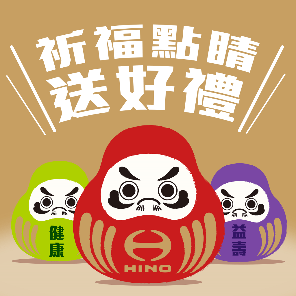 2022年適逢HINO來台70週年,為促進臉書粉絲及車主的互動,特推出祈福點睛抽好禮活動,凡於春節活動期間來廠消費,並將開運達摩「開眼」於達摩身上寫下「平安」、「發大財」等3字以內之許願祈福語,即可獲得戲春食趣戳戳樂機會一次。同時也於HINO官方臉書平台上推出線上祈福抽好禮活動,邀請所有民眾一起分享祝福。