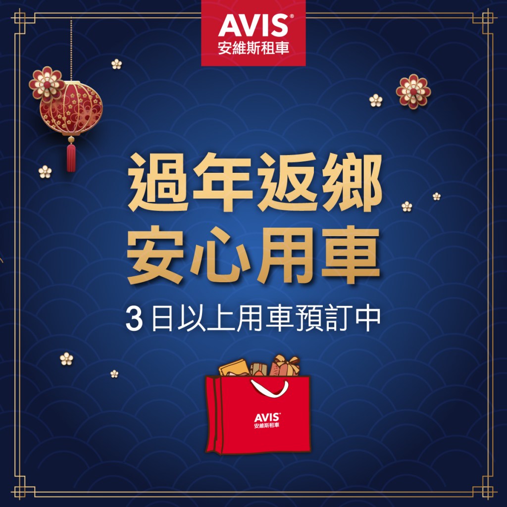 AVIS安維斯租車春節優惠 三日以上用車85折起再送防疫小禮包