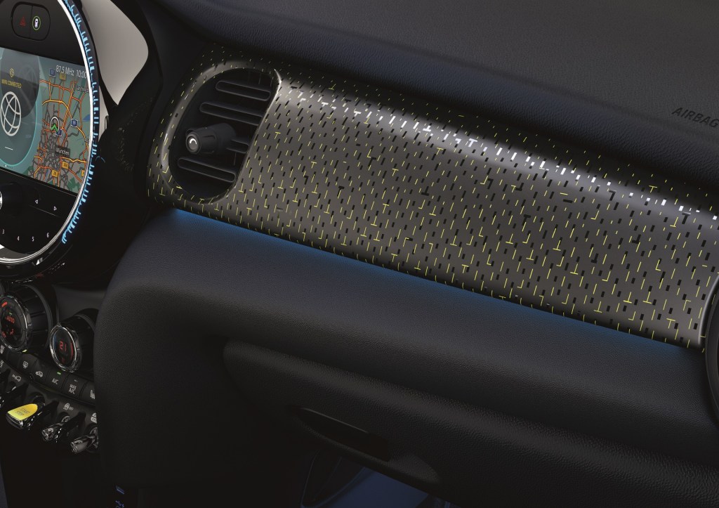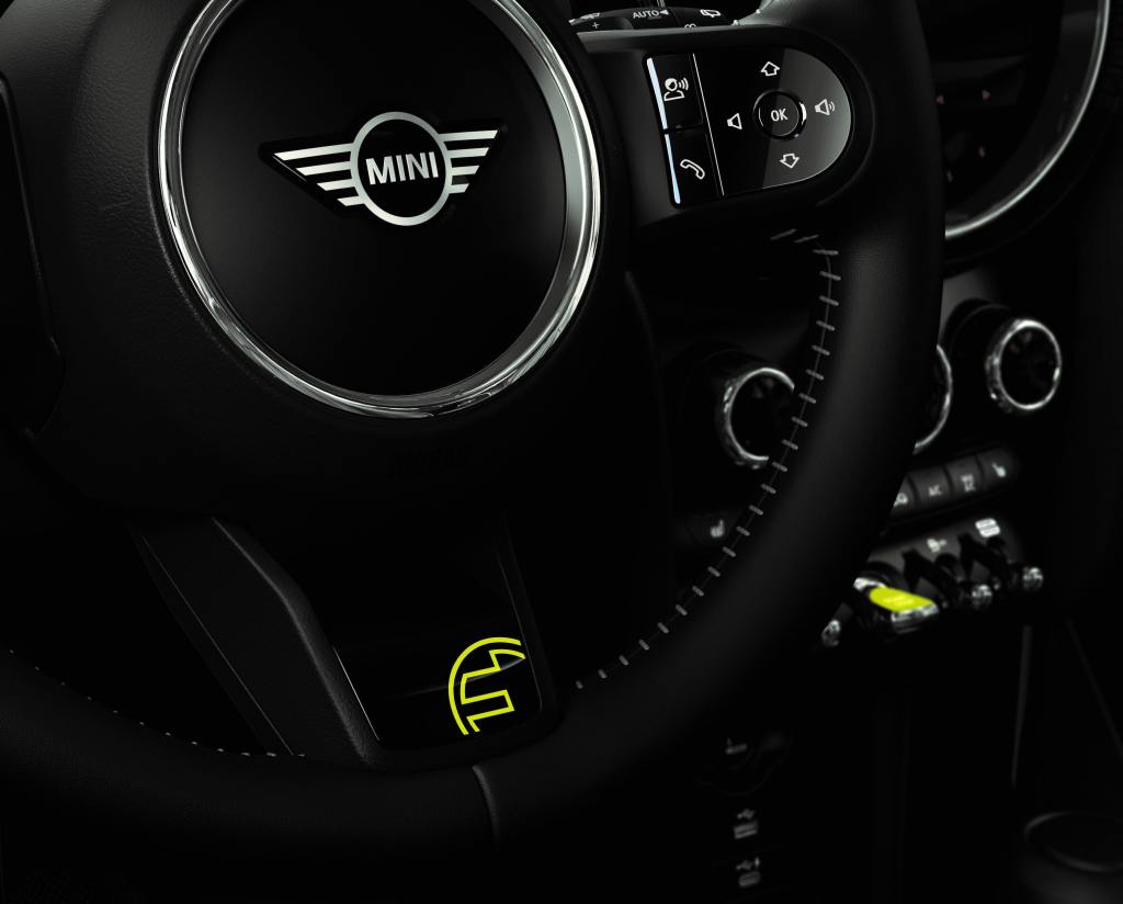 不只純電駕馭讓所有熱愛MINI操控感的愛好者耳目一新,全新MINI Electric內外觀同樣令人驚豔。在經典MINI 3-Door三門掀背設計語彙上,以MINI電動車專屬代表色Energetic Yellow構築都市潮流純電美學,再次將MINI熱情、活力、歡樂的品牌精神深植人心。專屬色調Energetic Yellow點綴於車頭水箱護罩、車側方向燈飾板與車尾車型銘牌的S徽飾上,後視鏡外蓋同樣以Energetic Yellow跳色呈現。進入座艙,副駕前方深灰色的MINI Cooper SE Electric內裝飾板亦有Energetic Yellow點綴;MINI Cooper SE 專屬電子排檔、MINI整合式數位儀錶上醒目的黃色設計,為座艙更添純電氛圍;而致敬經典戰鬥機駕駛艙撥桿設計的車輛啟動撥桿,同樣採用Energetic Yellow。按下撥桿,伴隨以摩斯密碼「MINI」打造的啟動音效,純電駕馭樂趣即刻展開!