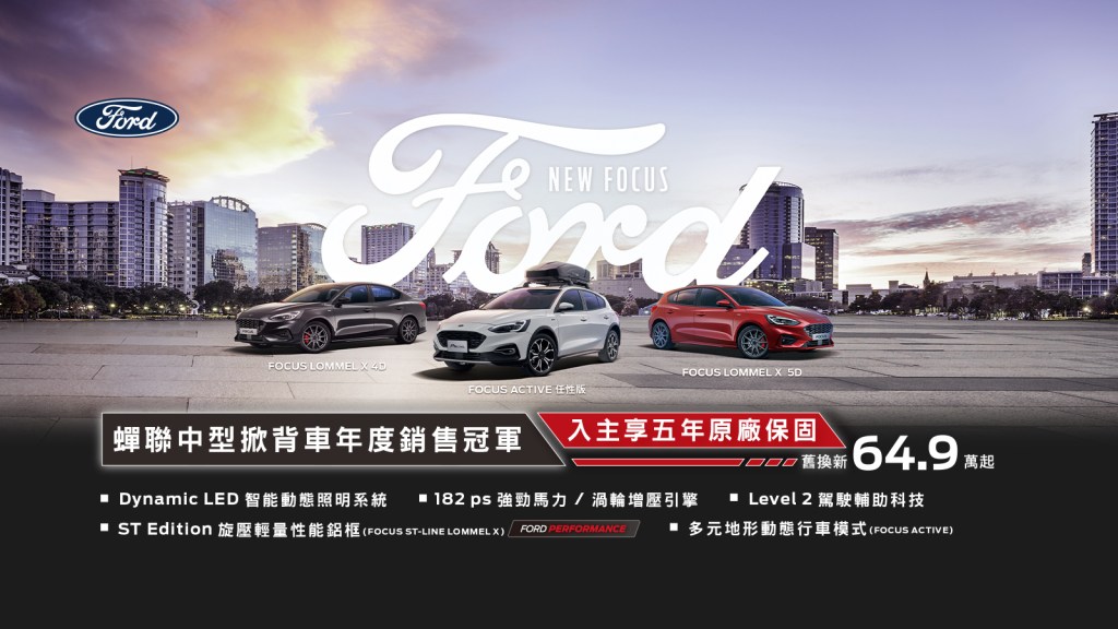 | 國產New Ford Focus/Focus Active | 三月份入主享舊換新64.9萬起,加贈5年原廠保固 |