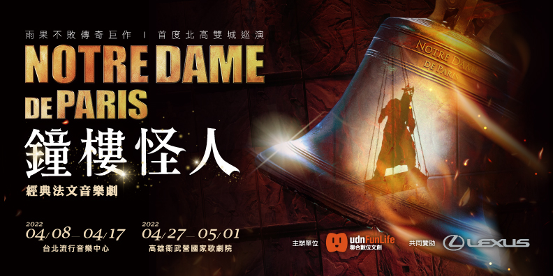 經典法文音樂劇《鐘樓怪人》(Notre Dame de Par-is)由聯合數位文創主辦。客服專線請洽(02)7721-6958 #2 (每日9:00-18:00),購票請上udn售票網。
