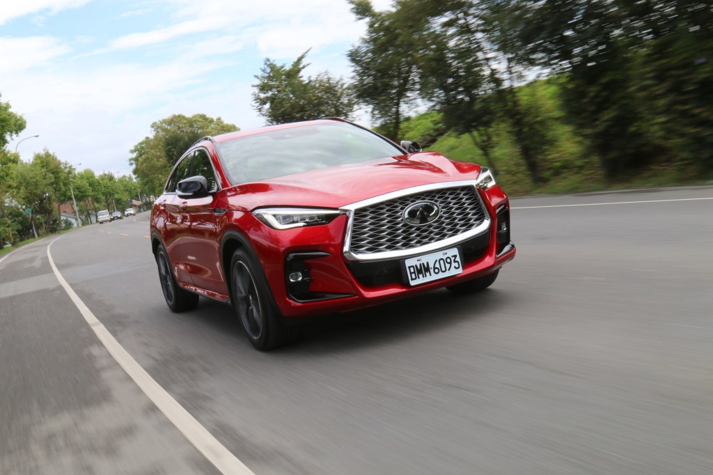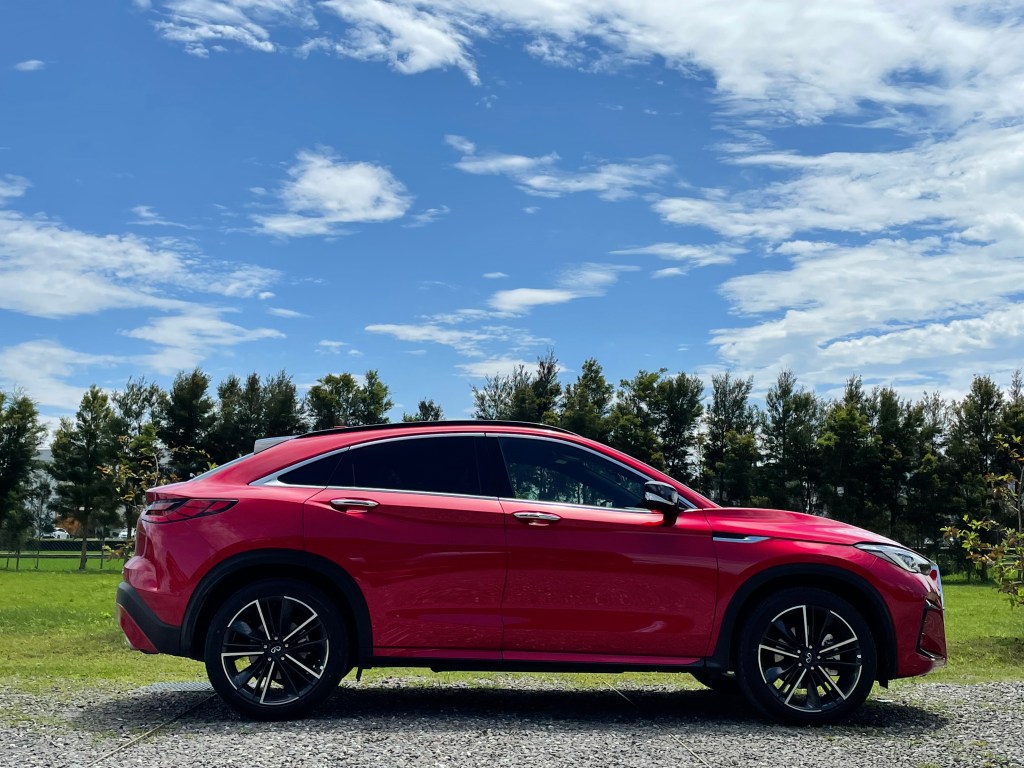 算是Q50車系跨界版的QX55,其第一代就是EX車系,也就是NISSAN Skyline Crossover版,或許當時走在流行浪潮之前,產品定位並未能獲得消費者共鳴,而今在大環境的改變下QX55終於有了舞台,就戰鬥力來說可一點也比歐系同級對手遜色!就外觀和內裝配備,QX55的風格真得很合我的口味,老派人就是不喜歡長得渾圓沒啥個性,藉由各種銳利線條所刻劃出的身影,整體真的很具跑格,這似乎也是目前跨界Coupe一貫的路線。巧思的運用絕對是QX55的特色,水箱護罩上的廠徽面積不僅「大」還隱藏攝影機,車尾門的啟閉鍵也藏在廠徽裏頭,總之就是減少多餘的配件,說實在真的有用心。