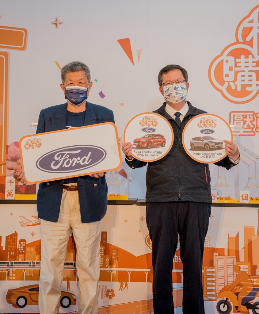 座落於桃園中壢,在台深耕近50年的福特六和汽車,為響應桃園市政府振興地方經濟推出的2021桃園購物節活動,傾力支持提供Ford Focus Active、Ford Kuga等,共計四輛熱門新車作為抽獎獎項,儼然成為桃園購物節提振人氣與買氣的超級助攻員。在今日(4/14)舉辦的「壓軸抽」活動當中,在桃園市長 鄭文燦與福特六和汽車董事長 許智樂見證下,汽機車獎項最大獎Ford Kuga EcoBoost®180 Lv2超質型(市值92.9萬)純正運動跑旅以及Kuga EcoBoost® 250 AWD ST-Line X(市值121.9萬)極致性能跑旅,正式抽出兩位幸運得主,為2021桃園購物節畫下圓滿句點!