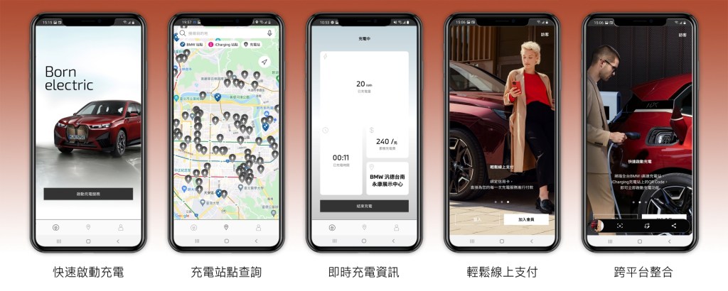 奠基於對於消費者的理解及預先設想,BMW總代理汎德不僅搶先規劃全台共14座且最高充電功率可達350kW的BMW i高速充電站,更率先於全台各地完成並啟用共4座BMW i高速充電站,分別建置於BMW大桐桃園展示中心、BMW長慶南投展示中心、BMW台南汎德永康展示中心與BMW高雄汎德新生展示中心,預計今年底前將陸續完成台灣環島BMW i高速充電站建置,搭配全台現有超過2,000座的公共交流充電座,構成緊密的充電能源網路。而為了讓消費者的純電生活更顯便捷,BMW總代理汎德特別針對台灣市場推出領先業界且具備高度整合的「BMW充電App」智慧服務,只要完成帳號註冊並綁定愛車資訊,就能夠輕鬆搜尋到BMW i高速充電站、BMW總代理汎德合作充電服務品牌中興電工iCharging的充電站點或是其他第三方充電服務站點,車主只要掃瞄QR Code就能啟動BMW i高速充電站或iCharging充電服務,並且能於App中即時查看充電狀態與充電紀錄,並透過綁定信用卡的方式進行費用支付,體驗BMW總代理汎德體貼的人性化服務流程。 BMW總代理汎德除了持續佈建台灣智慧充電生活圈,合作的充電服務品牌「中興電工iCharging」,同樣積極於高速公路服務區、市區熱點等交通匯集重點區域建置CCS1規格的DC直流充電站點,預計今年第三季以前將會啟用多達20處站點、40支充電槍,提供BMW車主更便利迅捷的充電服務,擘畫完備的環台充電網路。此外,為了讓BMW電動車主的純電用車生活更顯便捷,無縫接軌未來電能生活,總代理汎德將提供車主最大輸出功率可達8.8kW的BMW Wallbox原廠家用交流充電座乙座,搭配專業施工人員到場評估及安裝服務,而消費者也能改選BMW總代理汎德所提供的全台BMW i高速充電站2年免費充電服務,感受BMW總代理汎德為台灣消費者所擘劃的360度全方位充電策略,讓電動車車主享受電能駕馭的同時,更能感受十足的安心與信賴感,體驗便利的未來世代科技電能用車生活。