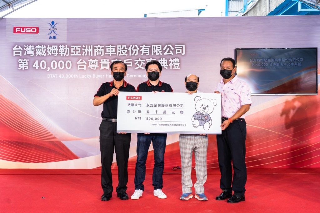 台灣商用車龍頭FUSO與Mercedes-Benz Trucks總代理 「台灣戴姆勒亞洲商車股份有限公司」 (簡稱DTAT)於今年三月正式合併賓士品牌卡車,即於4月底傳來捷報!DTAT於4月29日舉辦成立後「第40,000台尊貴客戶交車典禮」慶祝活動,為感謝車主及頭家們的支持,此次DTAT特別移師新竹,為客戶量身打造一場別具紀念意義、簡單而隆重的頒獎典禮,高規格的頒獎典禮讓在場賓客大呼驚喜及感謝!DTAT自2017年正式營運,期間每銷售出5,000台新車,即會為幸運車主舉辦慶祝活動,成立第五年即迅速達到40,000台里程碑,此次第40,000台的幸運得主為專司混凝土製造技術的「永炬企業股份有限公司」,自創立至今30餘年都秉持著審慎、正派、穩健的經營理念,持續追求更進階的混凝土製造技術以及維持一貫的高品質,力求提供超越期待的服務品質予客戶。