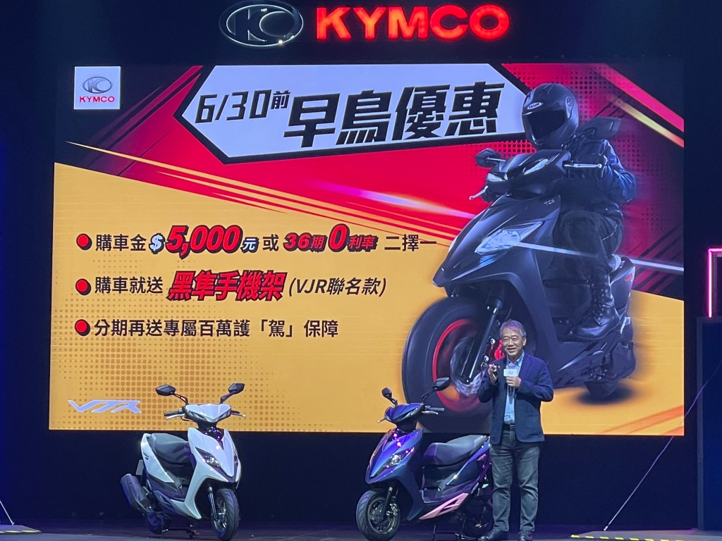 為感謝多年來消費者對於VJR家族的熱烈支持、超過40萬的車主肯定,即日起購買VJR 125 4V/TCS(售價分別為82,000元、91,000元)即享$5,000元購車金(或36期0利率)二擇一的優惠方案,分期購車再送專屬百萬護「駕」保障。新車上市更限時加贈黑準磁浮手機架(VJR聯名版/市價$2,190元)。早鳥優惠只到6月30日止,欲購從速! (以上詳細活動資訊請洽KYMCO官網)