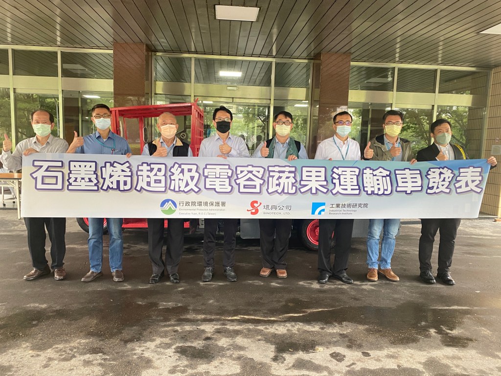 電動車領航低碳農業運輸,工研院今(11)日攜手國內廠商推出全臺首輛超級電容儲能運輸車,透過石墨烯超級電容取代鉛酸電池,能大幅減少電動運輸車高達九成的充電時間,提升三成載運量,並能克服坡段行駛馬力不足的問題,是新一代革命性的綠色再生儲能載具方案,將為我國果菜運輸邁向低碳運輸奠定基礎,加速促成燃油運輸車的汰換。