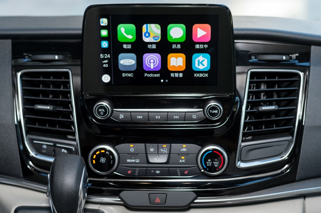 九人座Kombi車型在配備上的豐富度,是其搶攻商務用車市場的最大利器,擁有皮質包覆且供四向調整配置的三幅式多功能方向盤、內建SYNC®3娛樂通訊整合系統的4.5吋多媒體螢幕(含藍牙及USB功能)、6具揚聲器喇叭等豐富配備,帶來駕駛與乘客便利的車室科技氛圍。