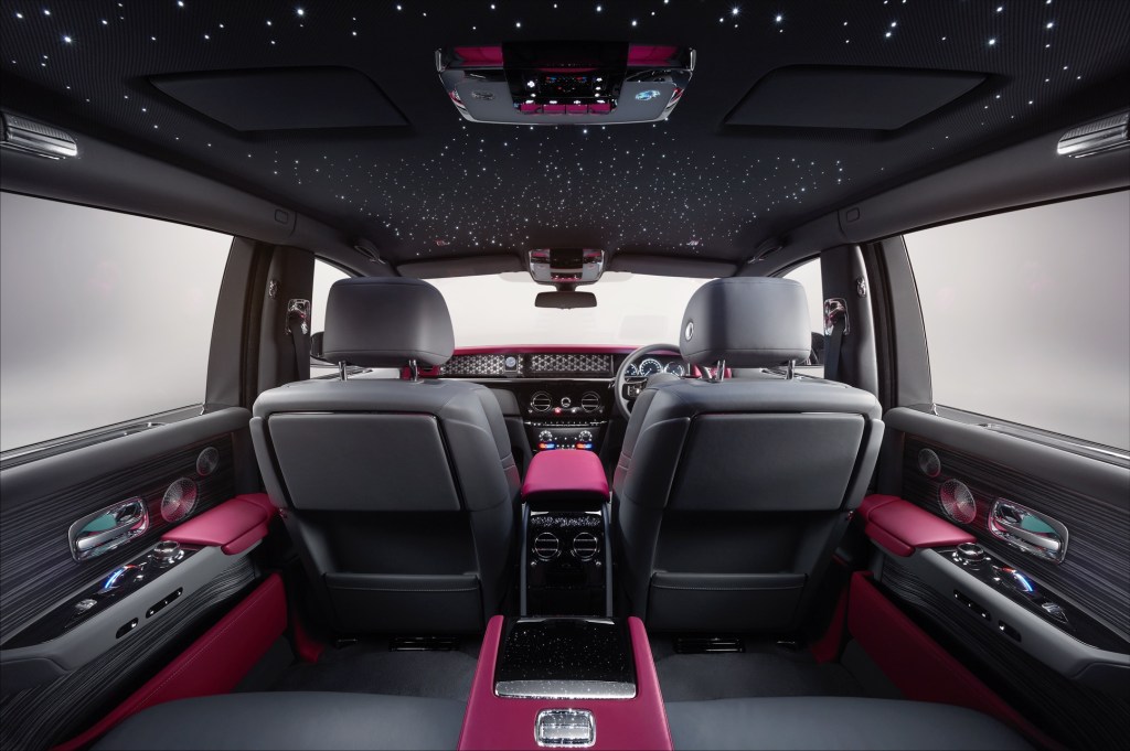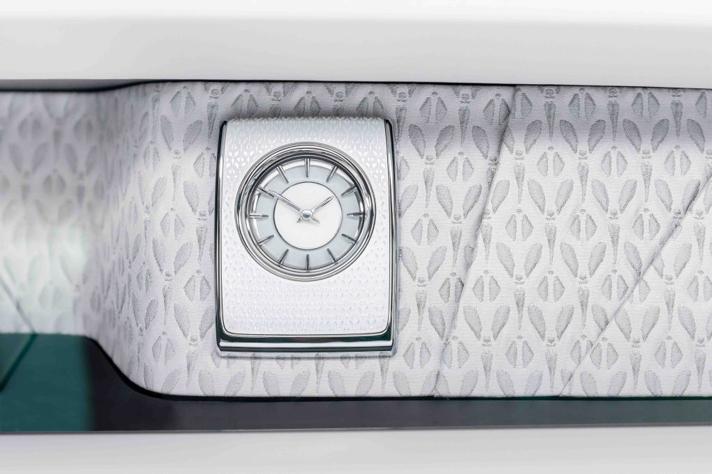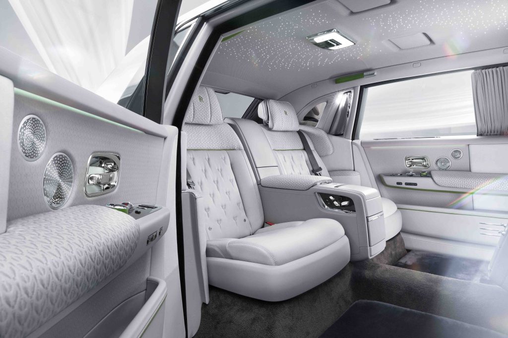 在 Phantom Series II 鉑金典藏版在儀錶上的客製化時鐘採用類似設計理念,其以當代科技呈現經典材料,時鐘錶盤為3D 陶瓷打造。而在車內中最可以揮灑天馬行空靈感的畫布當屬車頂。Phantom Series II鉑金典藏版的星空頂篷採用獨特設計,閃耀的群星向後延展,點點流星沿著車頂弧線熠熠生輝。