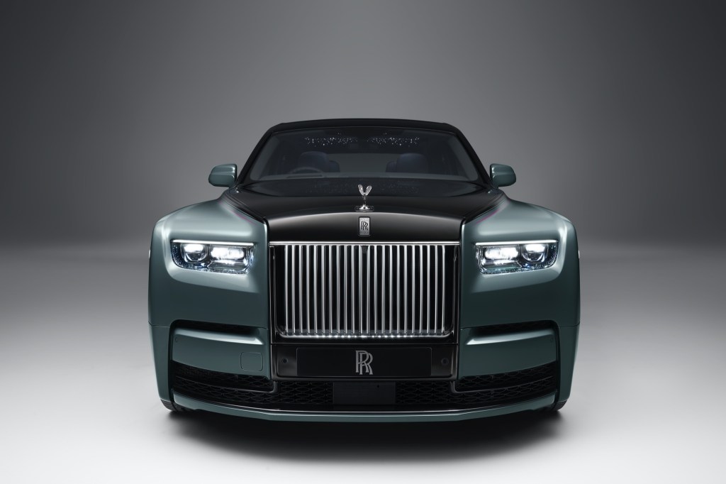 神廟式進氣格柵巧妙的幾何設計、雙R車標與歡慶女神交相輝映。格柵採用LED光源發光式設計,該發光格柵設計在 New Ghost 中首次亮相並加以推廣。前大燈設計在全新 Phantom Series II上採用鐳射切割,呈現仿若星光般的質感,該設計與車內的星光頂篷相互呼應,為夜間駕乘增添驚喜和愉悅之感。