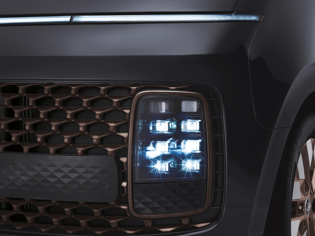 HYUNDAI STARIA以至臻創新設計賦予豪華MPV商旅新風貌,如同命名由STAR(星星)與RIA(波浪)合組字,外型概念源自星際旗艦造型,刻意傾洩延伸的開闊前擋加上低腰線大面積側窗,打破傳統商旅方正印象,車艙設計則是以駕駛與乘客的角度出發,營造360度寰宇透視感,橫貫中央LED日行燈設計猶如星月光影冉冉升起之姿,引領不同以往的成功之路。為彰顯CEO車型旗艦細節處豪華質感,專屬玫瑰金色蜂巢水箱護罩巧妙與矩陣式LED頭燈組合而為一,車側後照鏡與幾合切削造型鋁圈同樣佐上玫瑰金色,車尾顯眼明亮的光柱型像素式LED尾燈。車艙集結飛航頭等艙概念,舒適坐躺、全景視野、極佳材質觸感與機能收納,HYUNDAI新世代設計語彙傳達的創新、尊貴、大膽,正是展現未來之星獨具慧眼的豪華MPV商旅選擇。