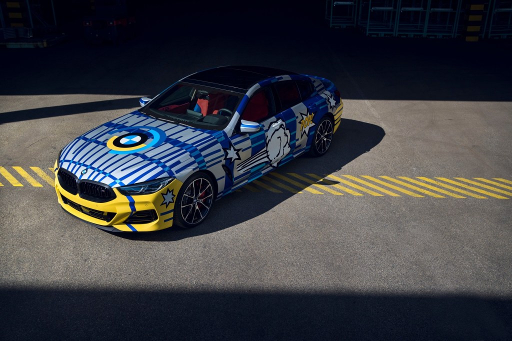 「THE 8 X JEFF KOONS」外觀由藍色、黃色、銀色等11種高飽和度色彩所交織而成,色彩與極富視覺張力的「POP!」爆炸圖案呈現潮流風格魅力,車身精緻複雜的幾何線條設計充滿活力與熱情,Jeff Koons解釋每一側由纖細至開闊的線條象徵著 「THE 8 X JEFF KOONS」的力量和速度,車尾爆炸性的高彩度線條也是向自己於 2010 年所創造的BMW Art Car致敬。座艙空間耳目一新的俏皮風格一覽無疑,座椅由強烈的紅色和明亮的藍色形成鮮明對比,使人聯想到漫畫世界中超級英雄的顏色以及BMW M品牌的代表色,其他內飾設計由BMW一貫的高端材質和精美皮革所組成,而杯架飾板上的簽名Jeff Koons特別選擇了BMW標誌性的巴伐利亞藍,將經典與潮流完美融合於BMW M850i Gran Coupé中,同時每輛車均附有Jeff Koons簽名證書與限量車的專屬車輛編號。